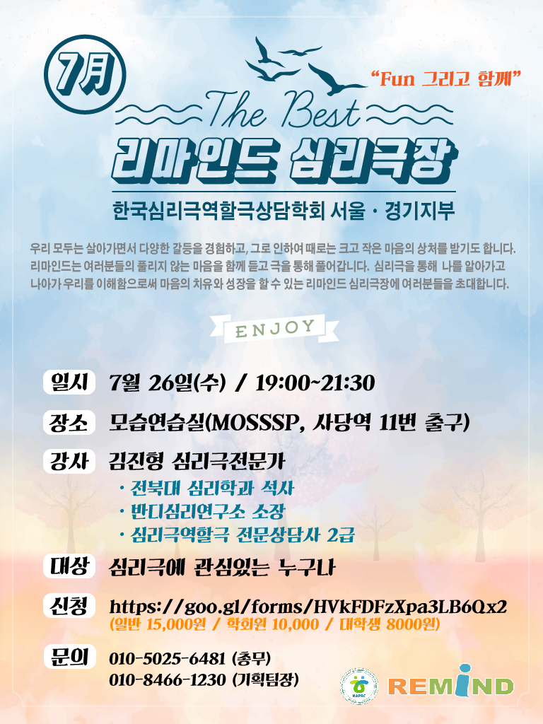 [종료] 7월 리마인드심리극장